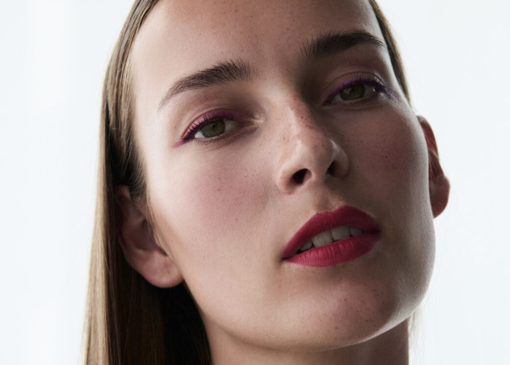 Selbstbewusste Modernität in ausdrucksvollem Rot! Matt und präzise setzt der Sensual Lipstick Scarlet den Mund in den Fokus. Ein Ausdruck purer Präsenz, den der Automatic Pencil for Eyes Cranberry in einer klaren Linie am Lidrand entlang fortsetzt. Der sehr natürlich gehaltene Teint unterstreicht den kraftvollen Minimalismus des Looks.